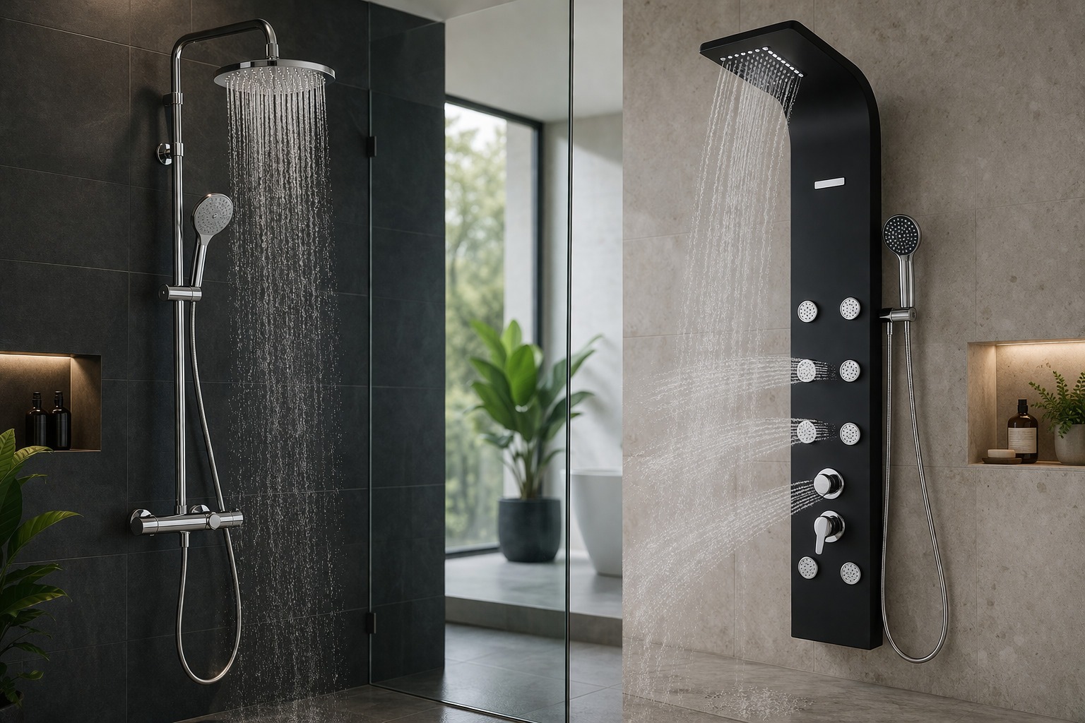 Coloana de duș este, în general, soluția mai simplă, mai suplă, mai practică și mai ușor de integrat. Panoul de duș este soluția mai complexă, mai voluminoasă, mai orientată spre funcții extra, în special jeturi pentru corp și experiență de tip spa. Asta este esența.